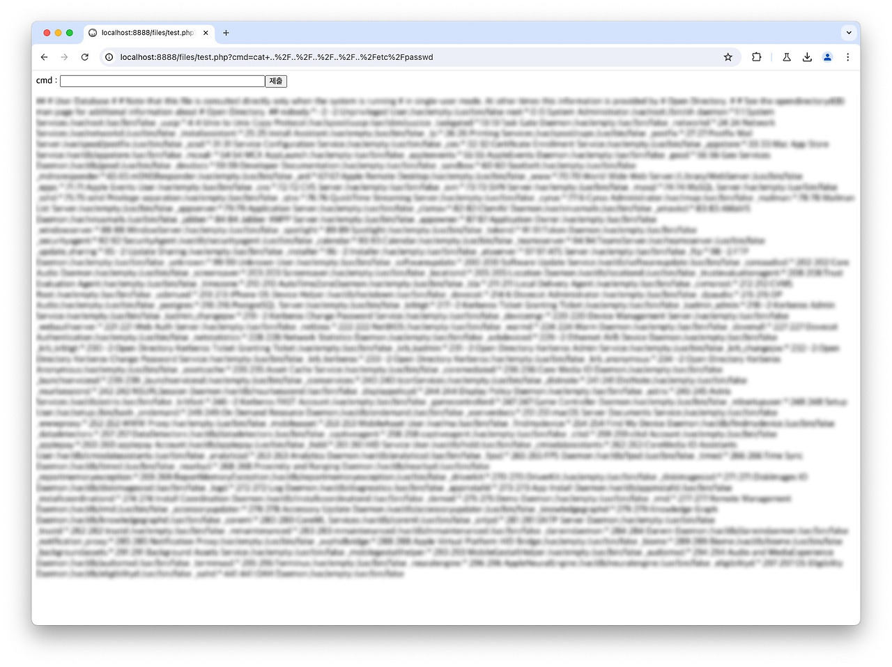 를 입력하여 최상위 디렉터리에서 /etc/passswd의 내용을 불러올 수도 있으며