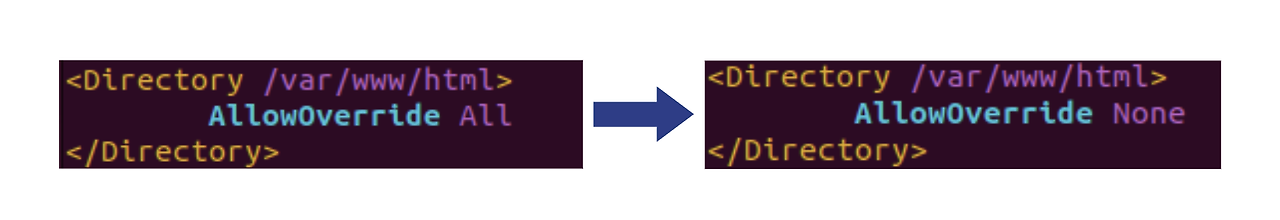 Apache 설정 파일 중에는 apache2.conf와 httpd.conf와 .htaccess가 존재합니다. 이 중에서 apache2.conf와 httpd.conf의 경우 서버를 재시작하지 않으면 수정 내용이 적용되지 않지만, .htaccess 파일은 Apache에서 사용되는 디렉터리별 설정 파일로 서버 재시작 없이도 디렉터리의 설정값을 지정해 줄 수 있습니다. 이 파일의 이름으로 공격자가 파일을 업로드할 경우 해당 내용이 저장된 디렉터리에 해당 설정이 적용되며, 이를 통해 png 파일을 php로 실행하는 등의 공격의 수단으로 쓰일 수 있기 때문에 해당 파일의 이름으로는 파일을 올리지 못하게 필터링을 적용하거나 또 다른 Apache 설정 파일인 apache2.conf 또는 httpd.conf 파일에서 .htaccess을 사용할 수 없도록 설정해 둘 수 있습니다.