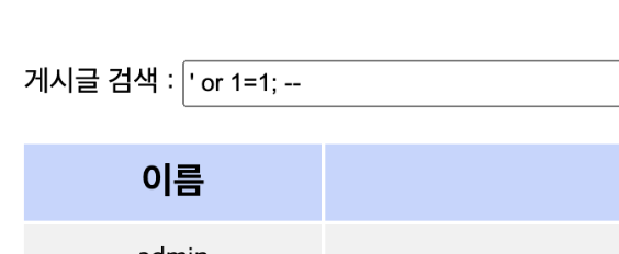 이처럼 아이디가 admin인 계정의 정보를 반환하는 것을 볼 수 있습니다.